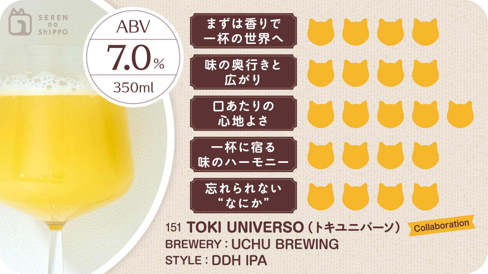 新年最初のタップを求めて、Uchu Brewing Toranomonへ。年明けの余韻が少しだけ残る店内で、並ぶ缶ビールを前にしばし悩みます。選んだのは、UCHUの「TOKI UNIVERSO(トキユニバーソ)」。ドス キウイス ブルーイング(スペイン/カタルーニャ)とのコラボです。コラボの言葉に背中を押されつつ、「今日はどんな世界が待っているんだろう」と胸が少し高鳴ります。
