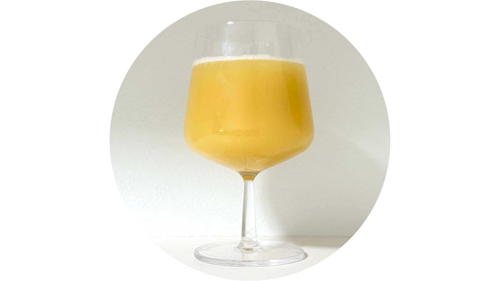 グラスに注ぐと、視界ゼロのニゴニゴな濃密オレンジゴールド。見るからに果肉感のある重厚な見た目です。香りはトロピカルが主体で、奥からふわっとオレンジのニュアンス。