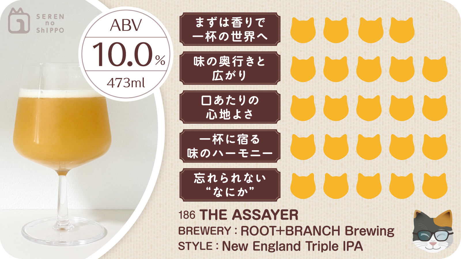 老舗のボトルショップで輸入ビールを物色。並ぶ中でもひときわ存在感を放つのが、ROOT+BRANCH BrewingのTHE ASSAYER(ジ アセイアー)。ラグジュアリーな価格帯に少し迷いながらも、今日は“ご褒美”として手に取りました。