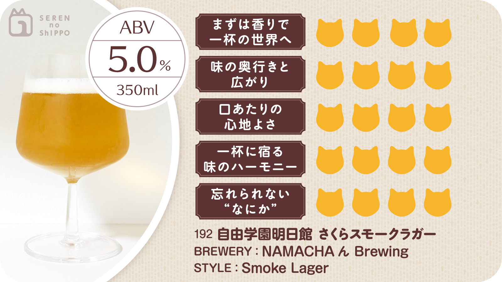 やさしい甘さを残しながら、静かに消えていく余韻も印象的でした。スモークビールが好きな方はもちろん、軽やかに楽しみたい一杯としてもおすすめです。