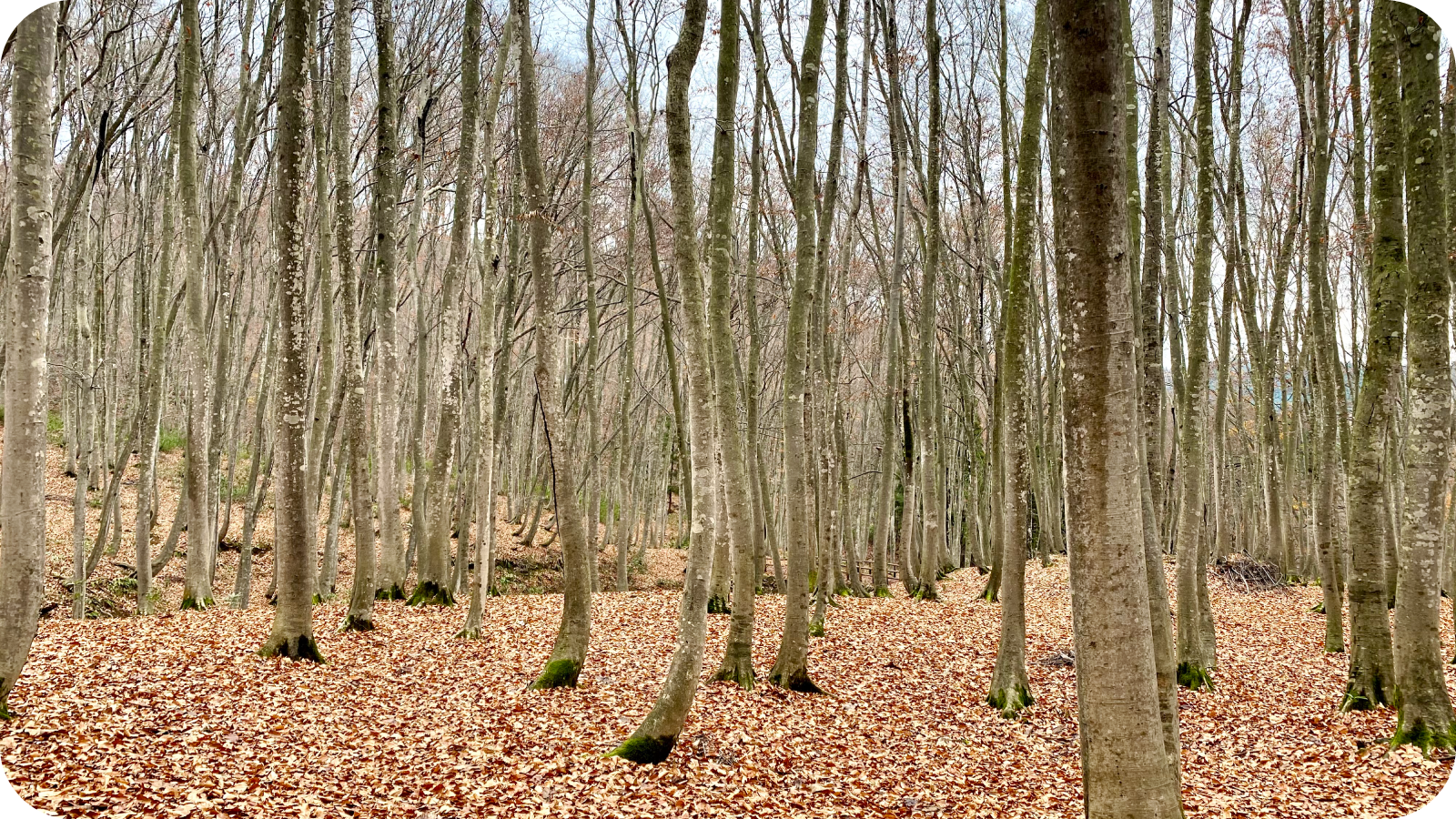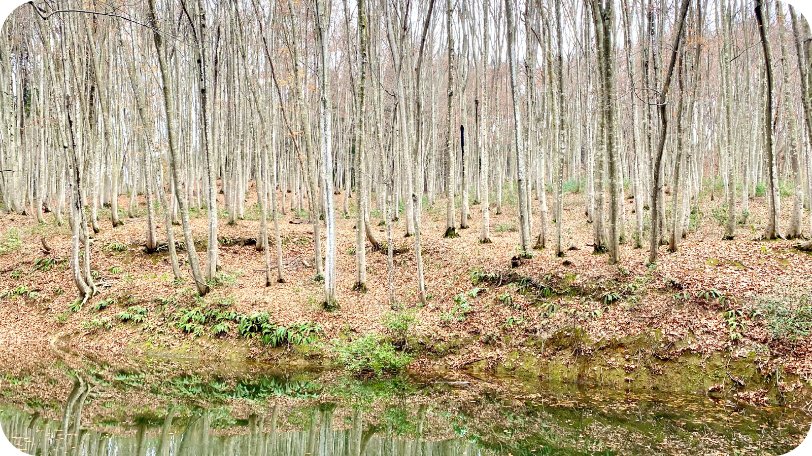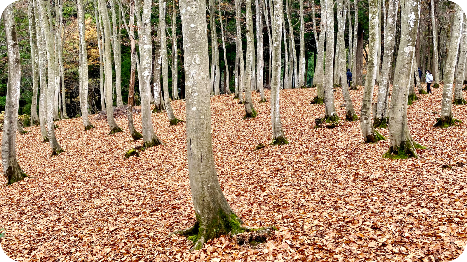 静けさが耳に触れるような、すらりと伸びたブナの立ち姿。季節ごとに表情を変えるこの林は、足音までやわらぐ“余韻の場所”でした。